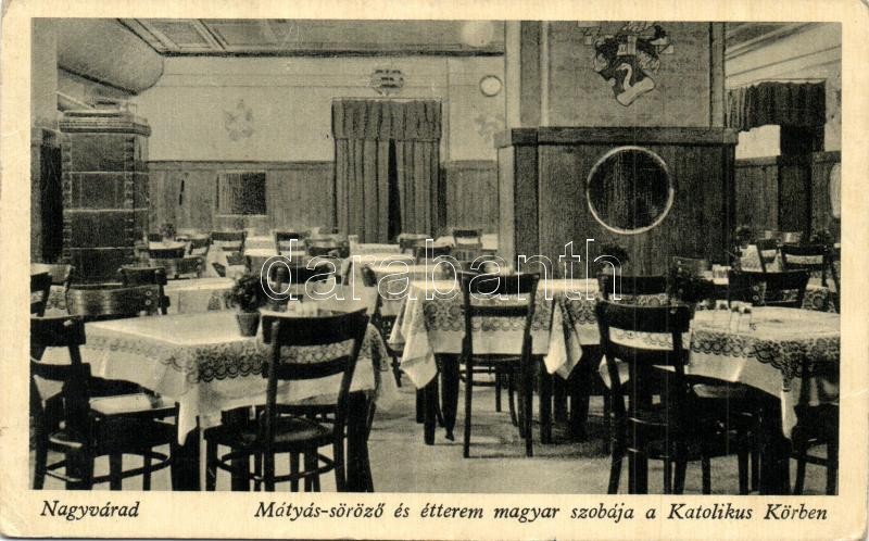Nagyvárad, Oradea; Mátyás söröző és étterem magyar szobája a Katolikus...
