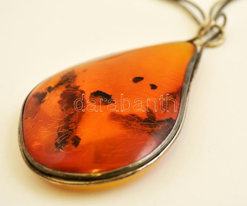 Ezüst (Ag.) nyaklánc borostyán kővel, jelzés nélkül, nettó: 18 g