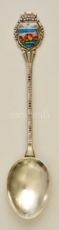 Ezüst(Ag) "San Gottardo" koronás díszkanál, jelzett, h: 10 cm, bruttó: 7,7 g