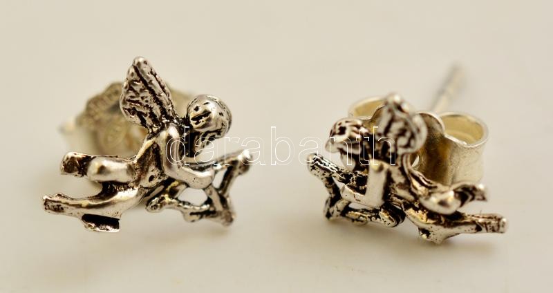 Ezüst(Ag) nyilazó Ámor fülbevalópár, jelzett, 0,8x0,8 cm, nettó: 0,9 g