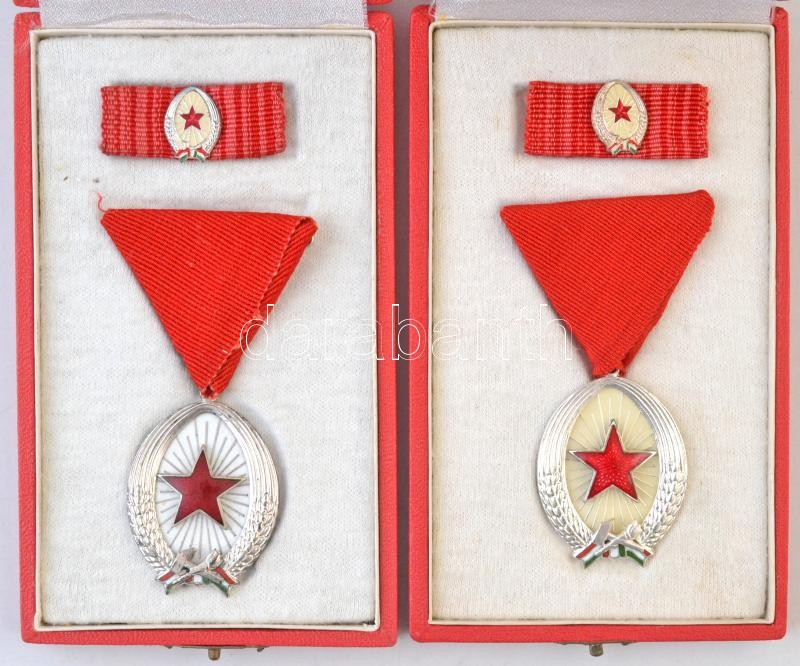 1964. "Munka Érdemrend" ezüst fokozata, zománcozott Br kitüntetés miniatűrrel szalagsávon (2x) mindkettő eredeti tokban T:2