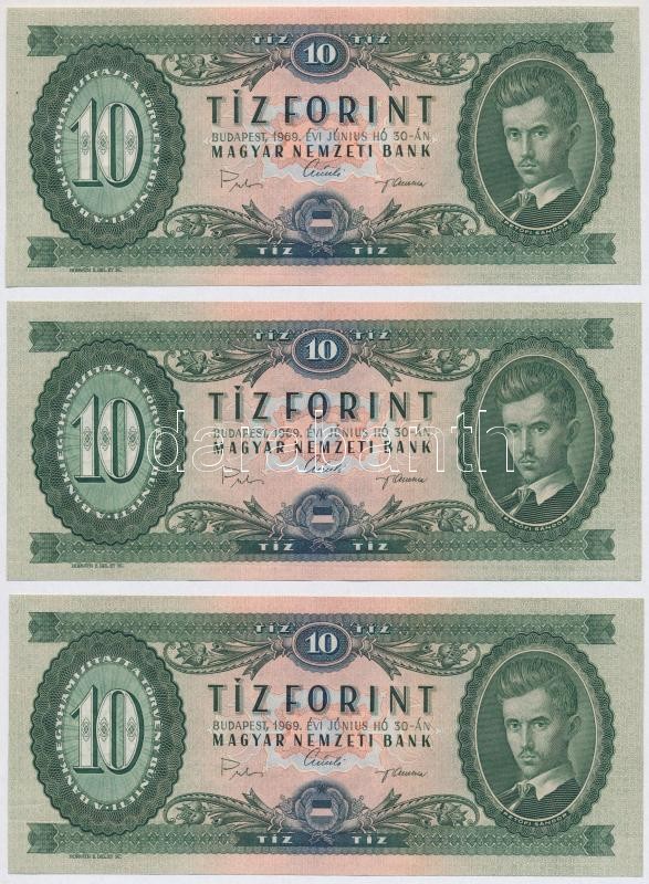 1969. 10Ft (3x) sorszámkövetők T:II,II- szép papír