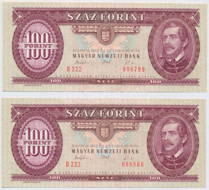 1993. 100Ft (2x) sorszámkövetők T:I-
