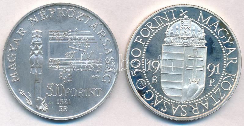 1981. 500Ft Ag "Bartók Béla" MNB tokban + 1991. 500Ft Ag "II. János Pál pápa látogatása" T:BU,1(PP)