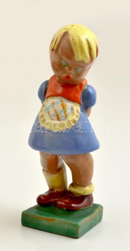 Komlós kerámia: Éneklő kislány. Festett mázas kerámia, jelzett, hibátl...