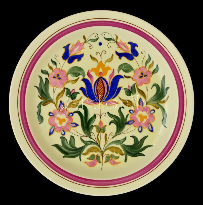 Hollóházi virág mintás falitányér, kézzel festett, jelzett, hibátlan, ...