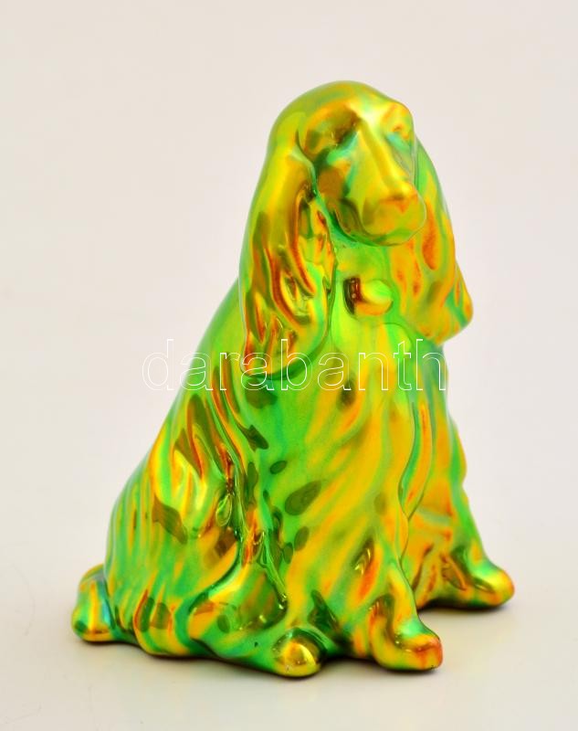 Zsolnay eozin mázas kutya, jelzett, hibátlan, m:11 cm