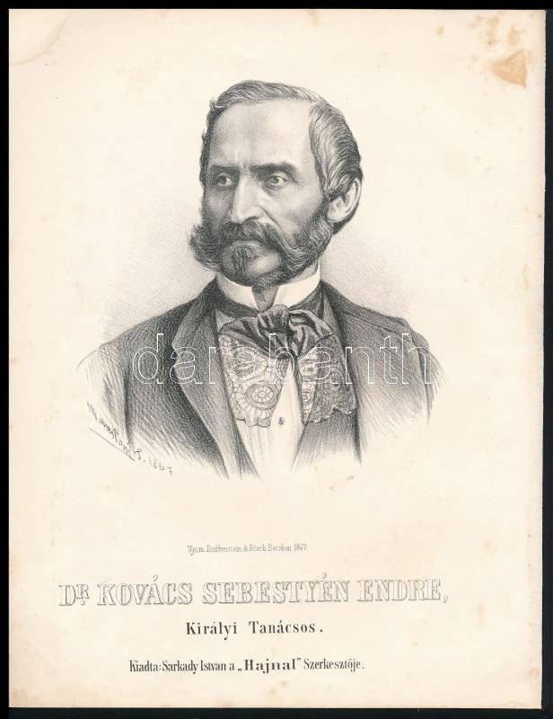 1867 Kovács Sebestény Endre (1814-1878) sebé, királyi tanácsos. Marastoini Jakab kőnyomatos portréja. Lithographic portrtait . 20x27 cm