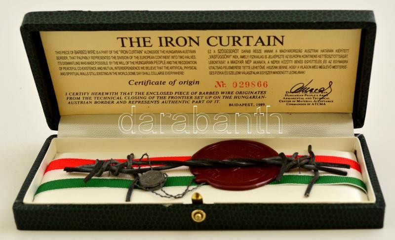 1989 Szögesdrót darab az osztrák-magyar határon húzódó vasfüggönyből (... https://www.darabanth.com/en/309-Online-auction/309.0/Other-collectibles/Historical-documents-manuscripts~17/1989-Szogesdrot-darab-az-osztrak-magyar-hataron-huzodo-vasfuggonybol-029866-sz-tanus~II1680176
