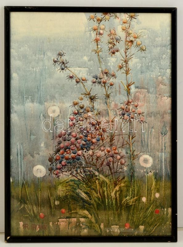 Frank jelzéssel: Galagonya. Akvarell, papír, üvegezett keretben, 56×40...