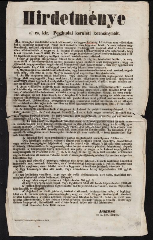 https://www.darabanth.com/en/309-Online-auction/309.0/Other-collectibles/Poster~27/1852-Pest-megyei-kormanyzati-hirdetmeny-a-megszaporodott-rablasok-miatti-intezkedesekrol~II1683137
