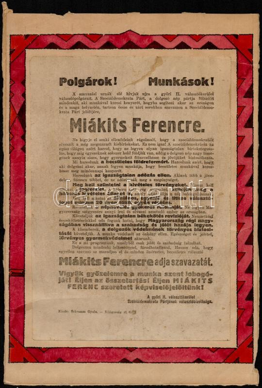 https://www.darabanth.com/en/309-Online-auction/309.0/Other-collectibles/Poster~27/1922-Schima-Andras-Bandi-1882-1959-Szavazz-a-szocialdemokrata-Miakits-Ferencre-Gyor-II-vC3~II1682556