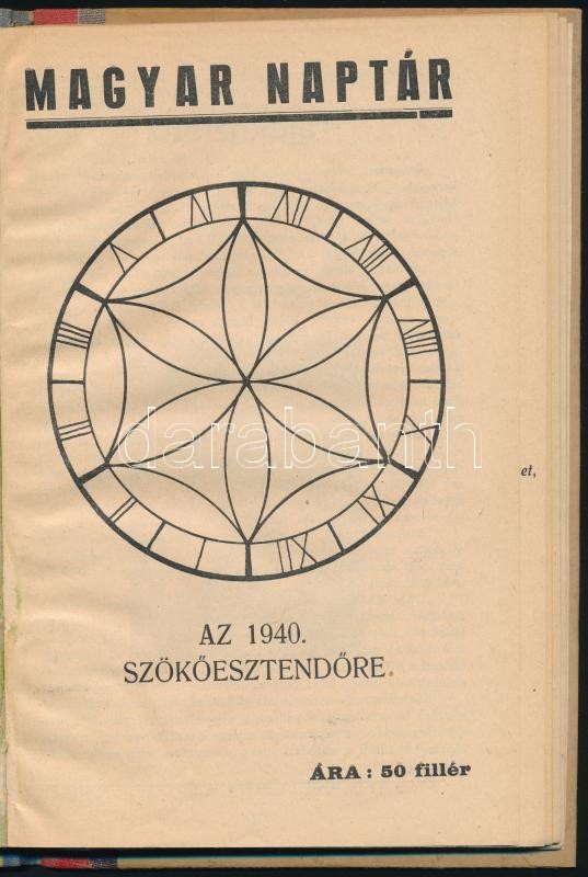 https://www.darabanth.com/en/309-Online-auction/309.0/Other-collectibles/Printed-Materials~26/1940-Magyar-Naptar-az-1940-szokoesztendore-felvaszon-kotesben-jo-allapotban-64p~II1685981