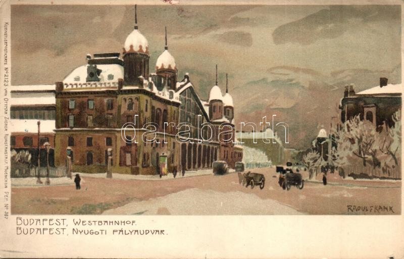 Budapest VI. Nyugati pályaudvar télen. Ottmar Zieher Künstlerpostkarte No. 2123. litho s: Raoul Frank (kis szakadás / small tear)
