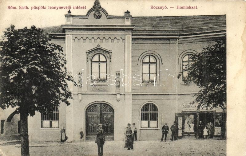 Rozsnyó, Roznava; Római katolikus leánynevelő intézet, Schiffer üzlete...