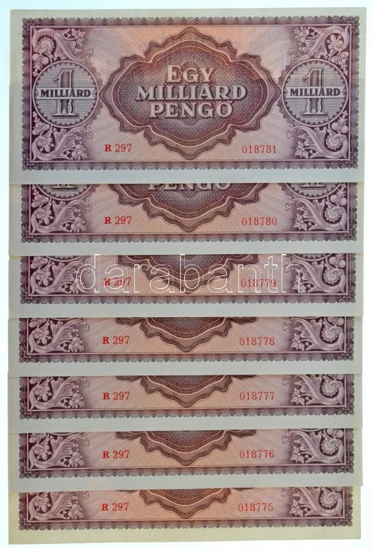 https://www.darabanth.com/en/31-Major-auction/31.1/Numismatics/Hungarian-and-foreign-banknotes~12827/1946-1000000000P-7x-sorszamkovetok-R-297-018781-R-297-018775-TI--Hungary-1946-100~II1944585