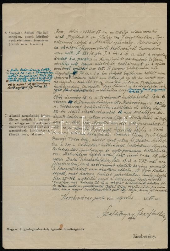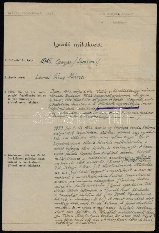 1944-1945 Szalatnay József (1915-1994) festő, tartalékos hadnagy 1945-... https://www.darabanth.com/en/31-Major-auction/31.1/Other-collectibles/Military~13316/1944-1945-Szalatnay-Jozsef-1915-1994-festo-tartalekos-hadnagy-1945-os-igazolo-nyilatkozata-C3~II1943136