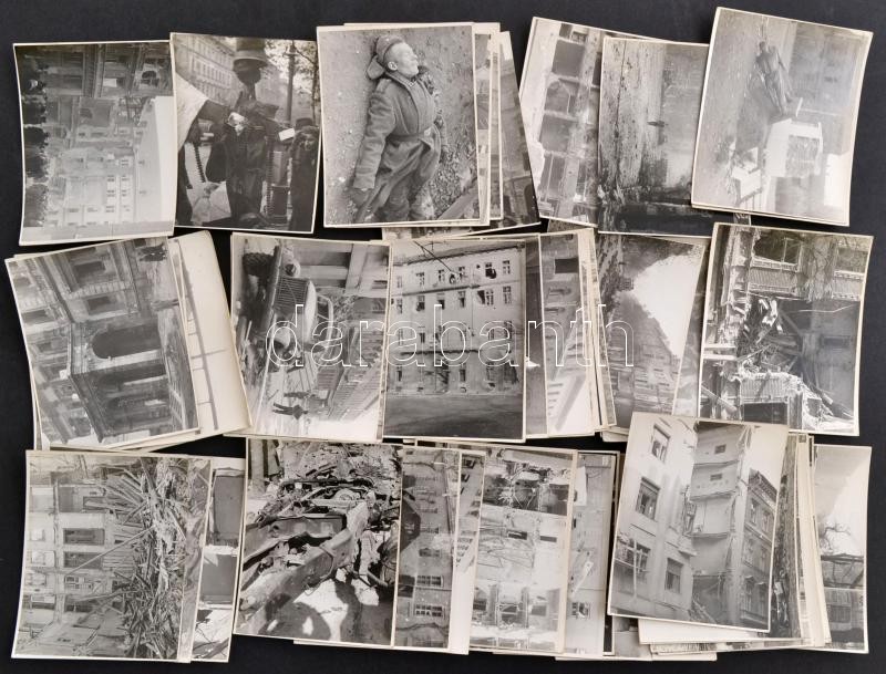 1956 Bp., a forradalom képei, 55 db fotó, hátuljukon feliratozva, 6,5×8,5 cm