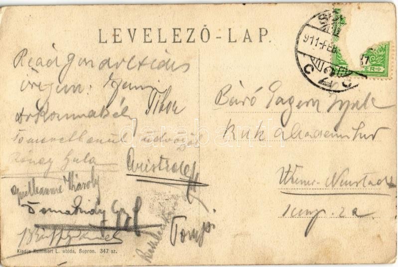 1911 Sopron, Várkerület, villamos, Dürböck szobafestő reklámja a házfalon, Brüder üzlete. Kummert L. utóda kiadása (Rb)