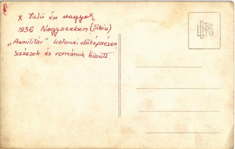 1936 Nagyszeben, Hermannstadt, Sibiu; "Premilitär" katonai előképzésen... https://www.darabanth.com/en/31-Major-auction/31.1/Postcards/Transylvania~13126/1936-Nagyszeben-Hermannstadt-Sibiu-Premilitar-katonai-elokepzesen-szaszok-es-romanok-ko~II1934391