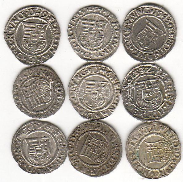 Kis tétel denár ezüst 9db. I. Ferdinánd 1532-1555. Csak egy duplával, ...