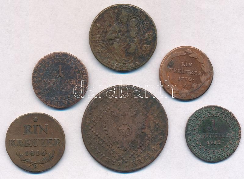 Vegyes: 6db-os rézpénz tétel, benne: 1763PH-KM Poltura, 1790S 1kr, 1807S 30kr, 1812B 1kr, 1812S 1kr és 1816B 1kr T:2-3-