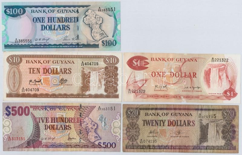 Guyana ~1966-2000. 1$-500$ (5xklf) T:I-IV