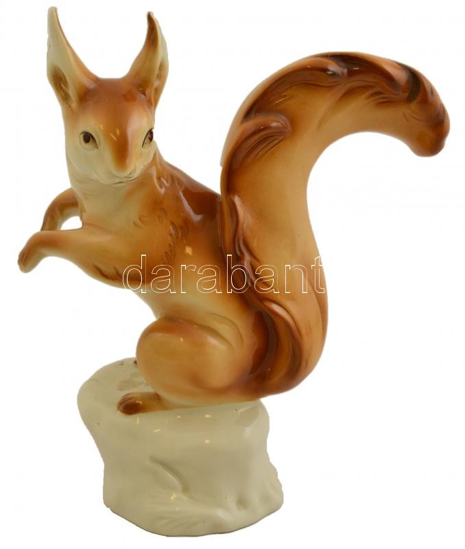 Royal Dux porcelán mókus, kézzel festett, jelzett, gyári repedéssel, apró lepattanással, m: 24 cm