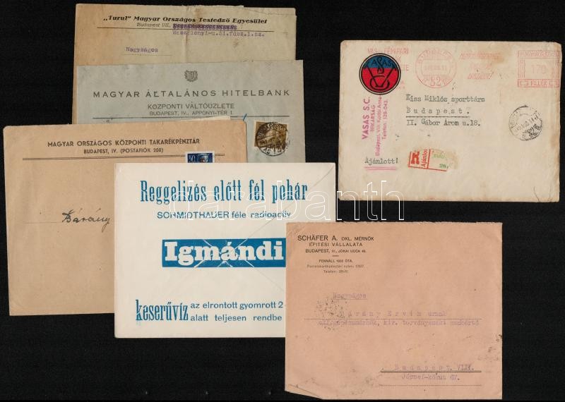 Fejléces borítékok (Wahlkampf és Görög Ásványvíz kereskedők, Pax Hírlap, Tiszaháti Magyar Bank, stb.), 10 db