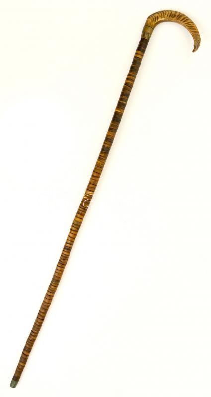 Szarugyűrűs bot, szarvból készült nyéllel, kis sérüléssel, m: 90 cm