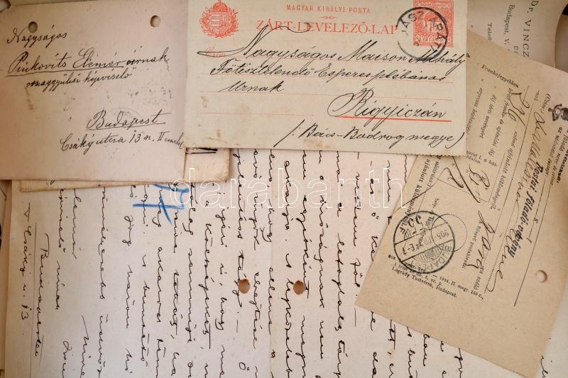 Description: Vegyes papírrégiség tétel ómoravicai Piukovics Elemér országgyűlési képviselő és földbirtokos hagyatékából, többségében régi levelek Piukovics Elemér részére, érdekes átnézendő tétel.