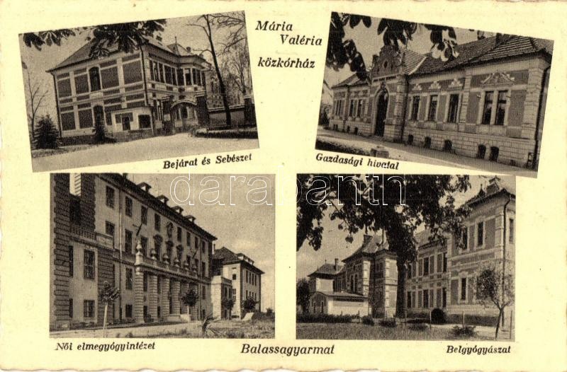 Balassagyarmat, Mária Valéria közkórház, bejárat, sebészet, gazdasági hivatal, belgyógyászat, női elmegyógyintézet