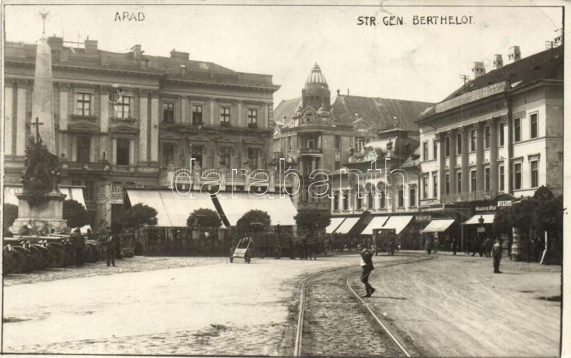 Arad, Andrássy tér, Szentháromság-szobor, Fehér Kereszt szálloda, hitelbank, Magazin de Moda, Klein M. üzlete / square, monument, hotel, credit bank, shops. photo