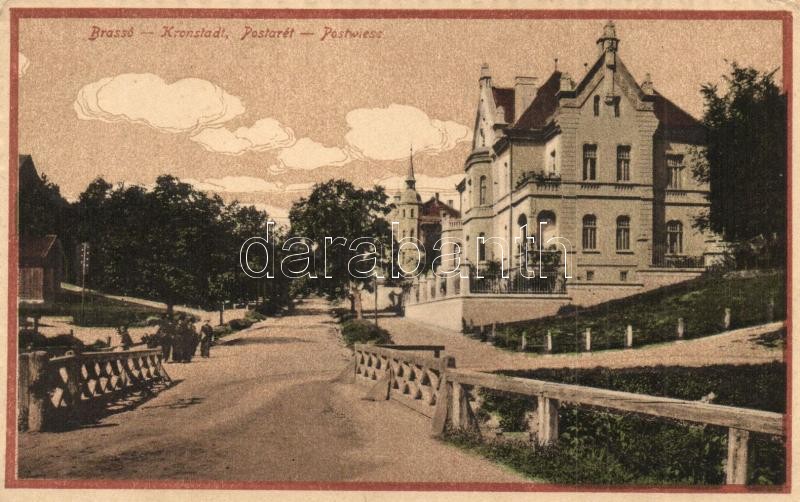 Brassó, Kronstadt, Brasov; Postarét / Postwiese / street view with villa (EK)