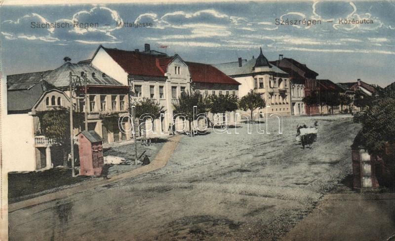 Szászrégen, Reghin; Közép utca / Mittelgasse / street view