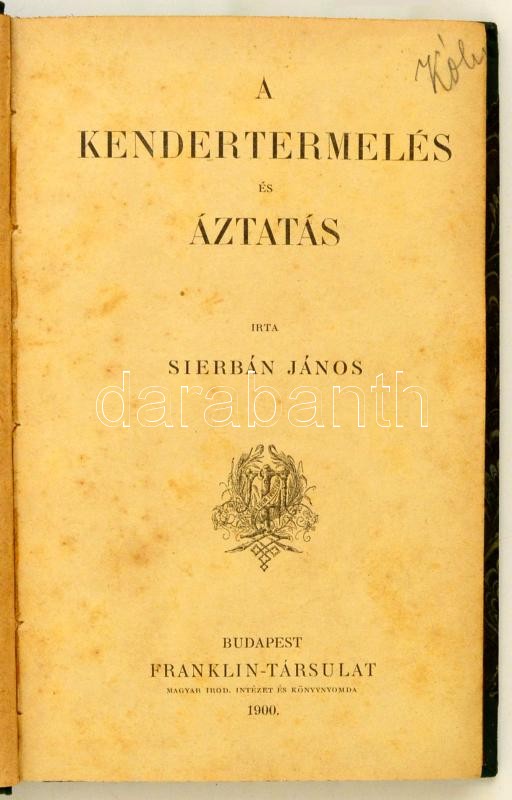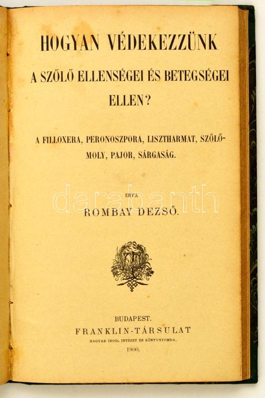 Sierbán János: A kendertermelés és áztatás. Bp., 1900, Franklin. + Rombay Dezső: Hogyan védekezzünk a szőlő ellenségei és betegségei ellen? Bp., 1900, Franklin. + Szalay János: A seprőczirok termelése. Bp., 1901, Franklin. Egybekötve, félvászon kötésben, jó állapotban.
