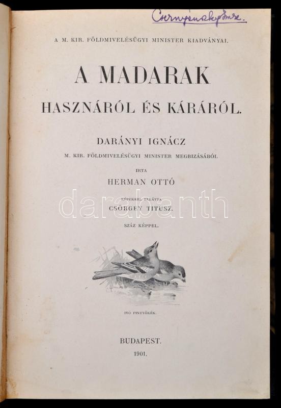 Herman Ottó: A madarak hasznáról és káráról. Bp., 1901, Franklin Társu... https://www.darabanth.com/en/311-Online-auction/311.0/Books/Books-Natural-sciences-Medicine~300037/Herman-Otto-A-madarak-hasznarol-es-kararol-Bp-1901-Franklin-Tarsulat-ny-279plus1-p-ElsC5~II1697394
