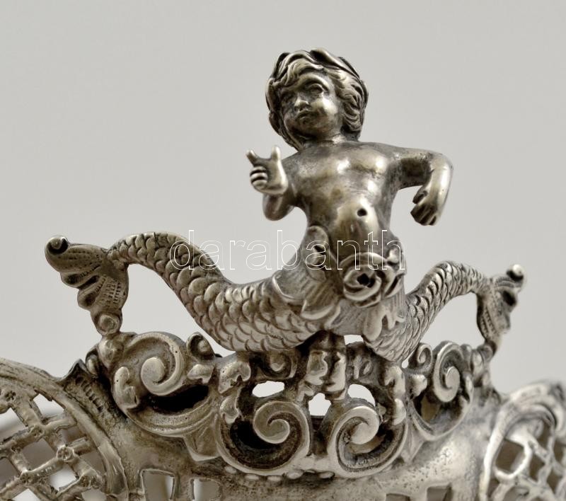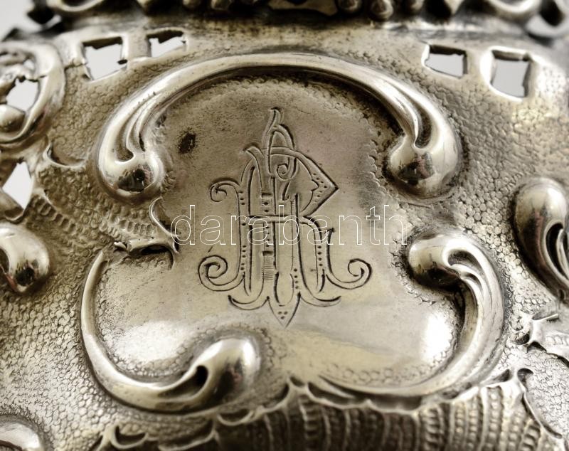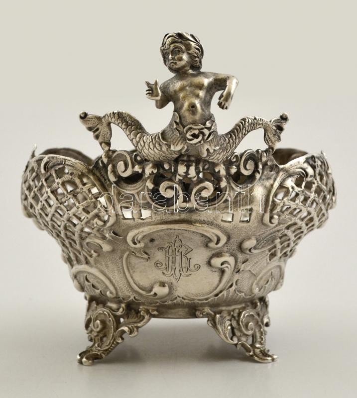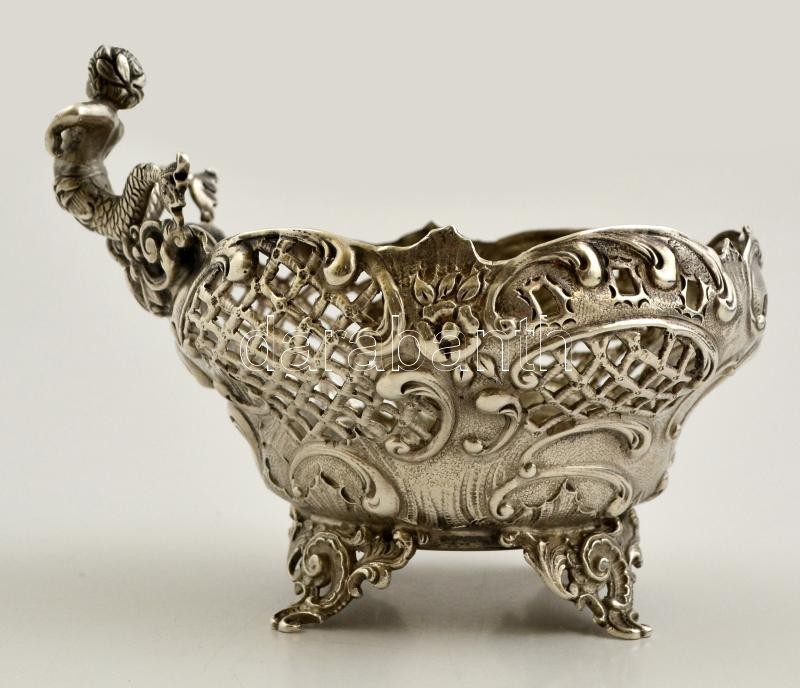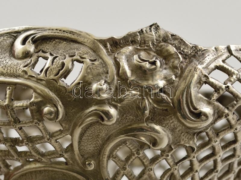 Ezüst (Ag.) áttört figurás kínáló, jelzett, mesterjeggyel (FD), 12×10 ...