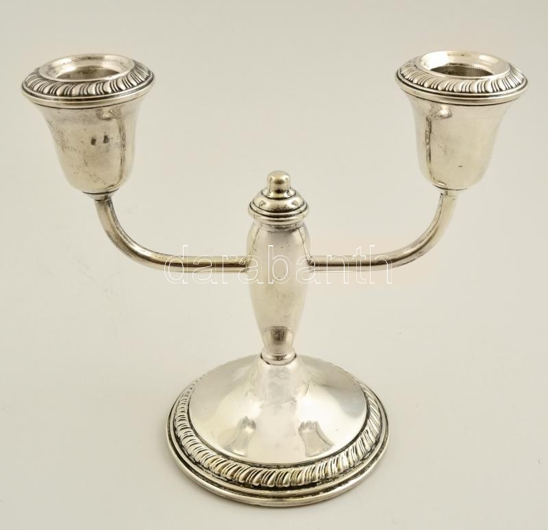 Ezüst (Ag.) kétágú gyertyatartó párban ( 2db), súlyozott, jelzett, m:...