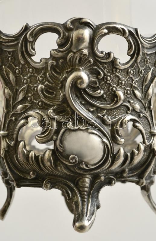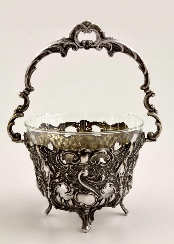 Ezüst (Ag.) kosár pótolt üvegbetéttel, jelzett, nettó :68 g, m:19 cm