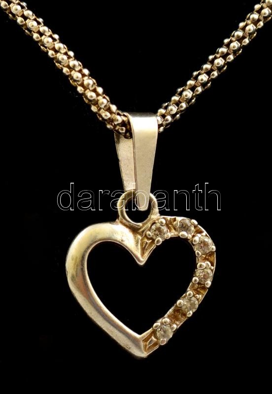Ezüst(Ag) csavart nyaklánc szív függővel, jelzett, h: 43 cm, bruttó: 3...