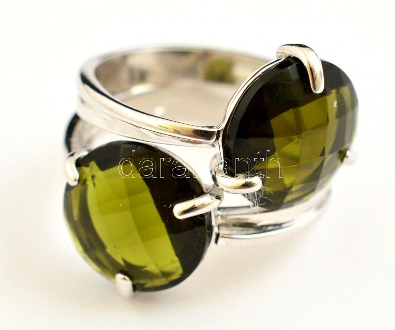 Ezüst(Ag) dupla zöld köves gyűrű, jelzett, méret: 53, bruttó: 6,7 g