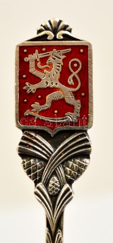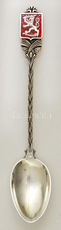 Ezüst(Ag) finn oroszlános-zománcos kanál, jelzett, h: 11 cm, bruttó: 9...