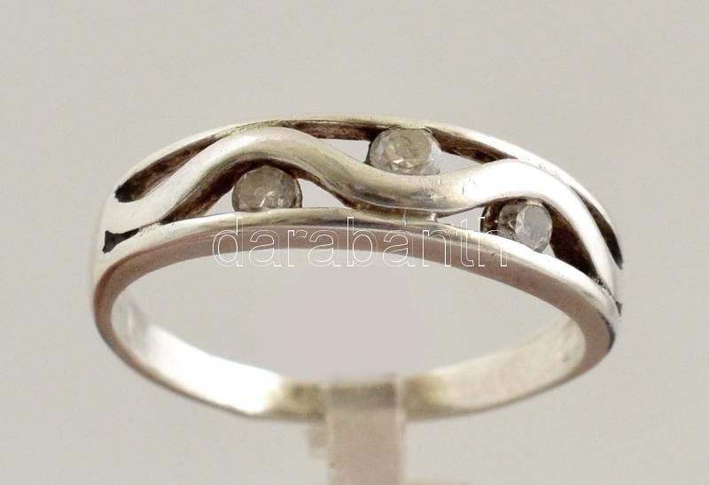 Ezüst(Ag) köves áttört gyűrű, jelzett, méret: 58, bruttó: 2,5 g