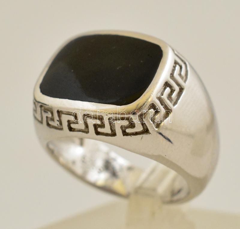 Ezüst(Ag) meandermintás köves gyűrű, jelzett, méret: 50, bruttó: 8,1 g