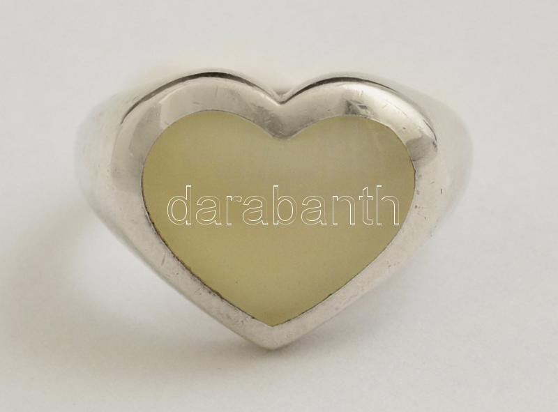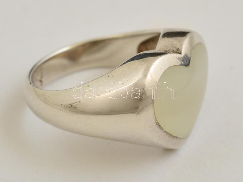 Ezüst(Ag) opálköves szív gyűrű, jelzett, méret: 55, bruttó: 9,3 g