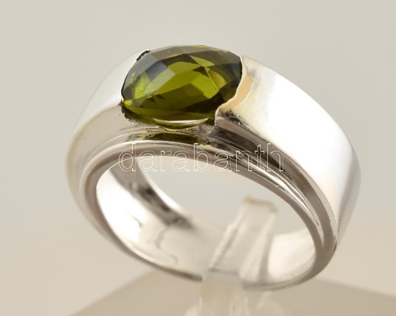 Ezüst(Ag) zöld köves gyűrű, jelzett, méret: 59, bruttó: 6,9 g