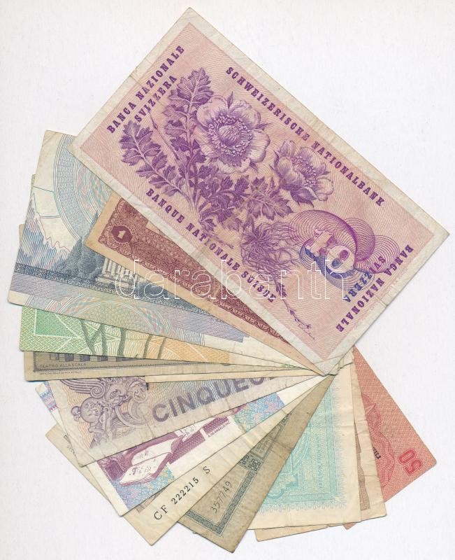 Description: Vegyes papírpénz tétel, benne Olaszország, Svájc, Osztrák-Magyar Monarchia és katonai kiadások T:III,III-