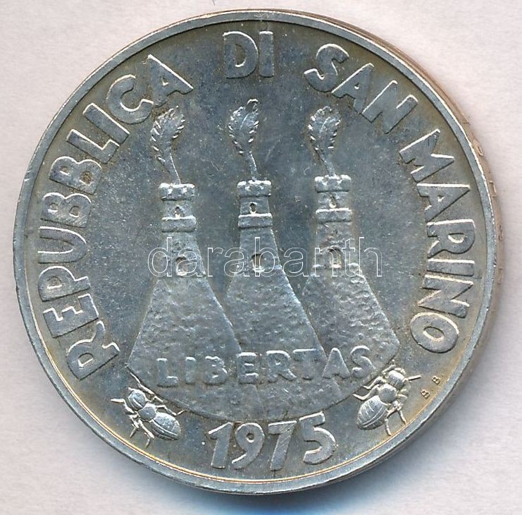 https://www.darabanth.com/en/311-Online-auction/311.0/Numismatics/Worldwide-silver-and-metal-coins~13/San-Marino-1975-500L-Ag-Siralyok-repulnek-szogesdrot-felett-T1---San-Marino-1975-500-Lire-A~II1678979