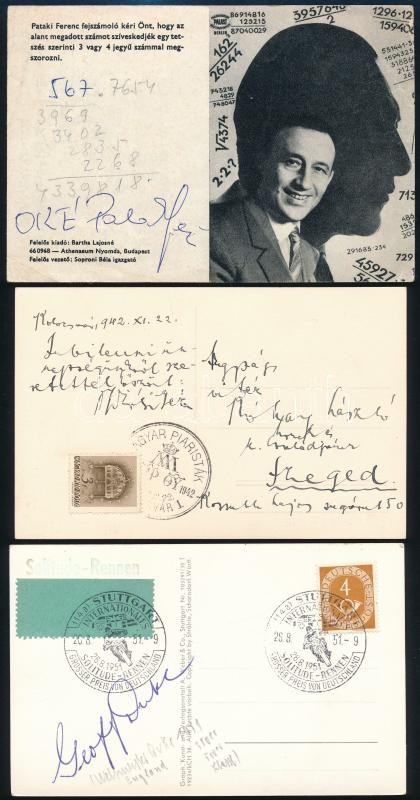 3 db érdekes aláírás: Pataki Ferenc fejszámoló, dr. Siklósi Géza, Geof...